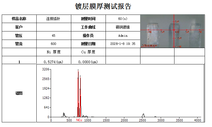 以下是镀层厚度分析仪EDX 8000T plus用于分析接线端子电镀层厚度的测试报告: